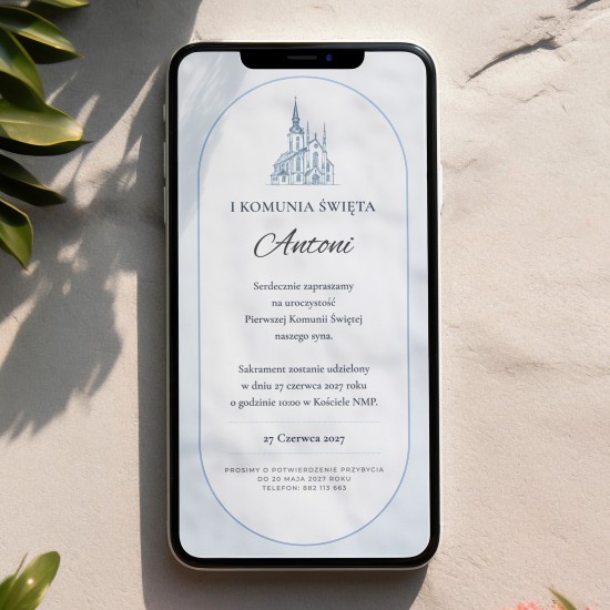 e-Zaproszenia na komunię - błękitny kościół (zaproszenia on-line)