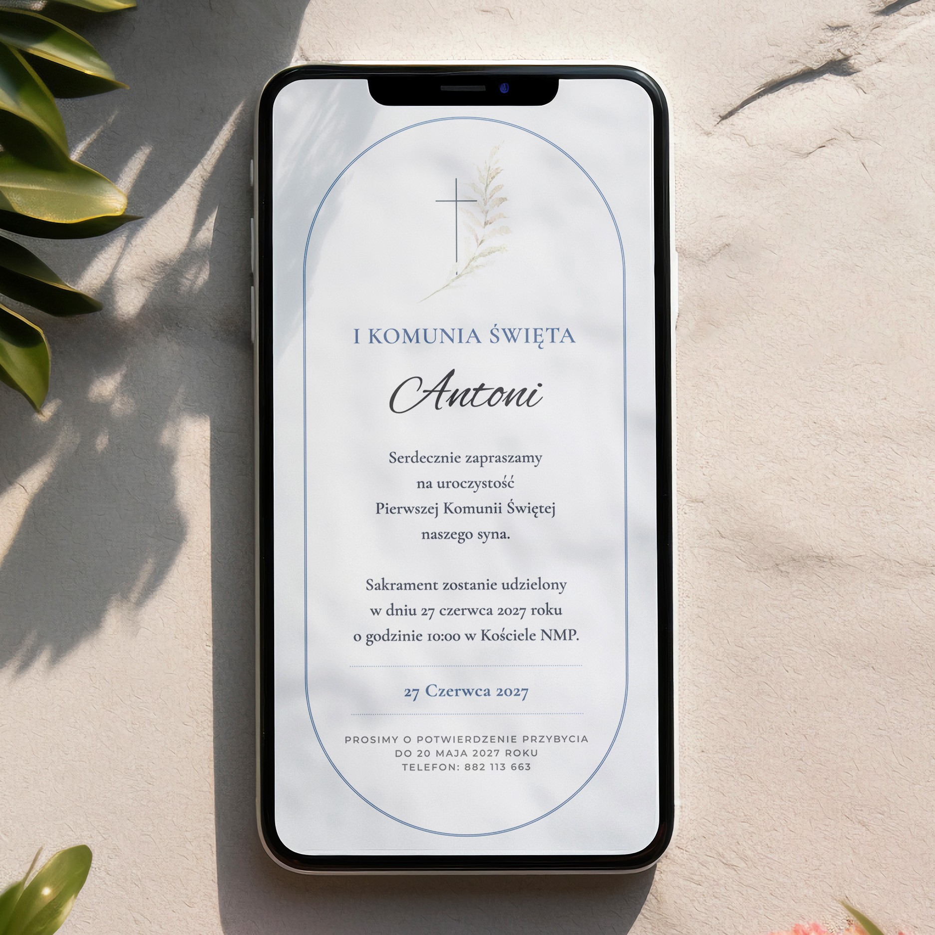e-Zaproszenia na komunię - błękitny krzyż (zaproszenia on-line)