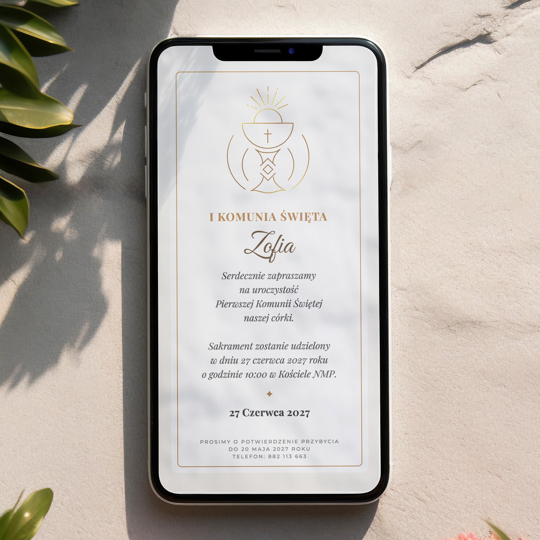 Zaskocz swoich gości eleganckim, cyfrowym zaproszeniem w formacie zaprojektowanym z myślą o większości smartfonów. To najwygodniejszy sposób na przekazanie radosnej nowiny – bez wizyt na poczcie, wysyłasz je jednym kliknięciem przez ulubiony komunikator lub SMS.