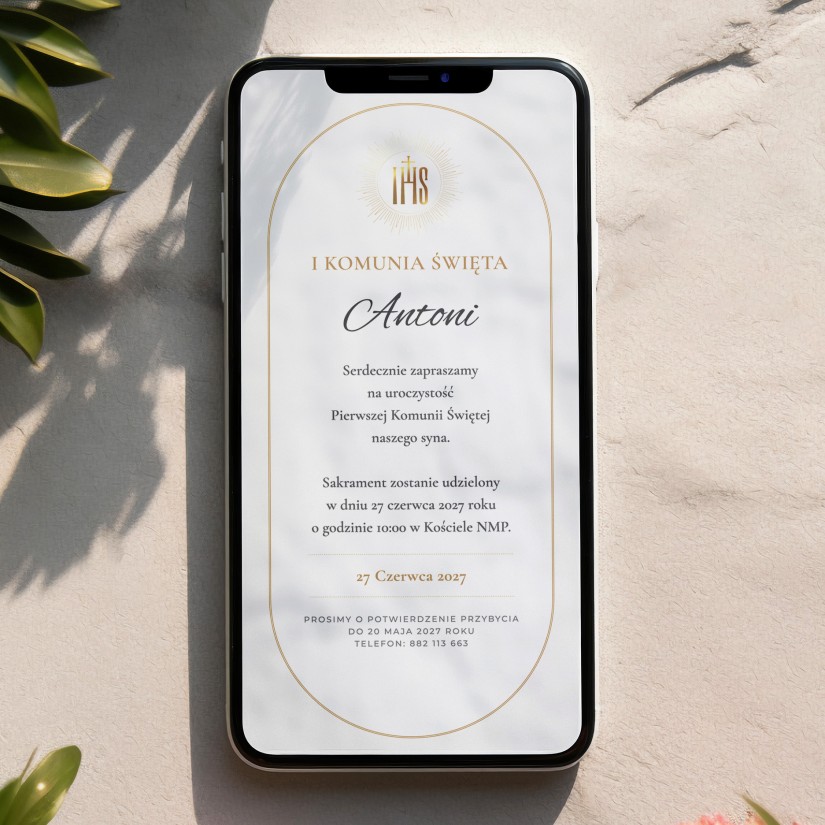 e-Zaproszenia na komunię - złote IHS (zaproszenia on-line)